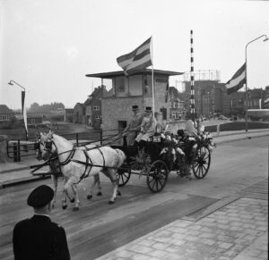 augustus 1951, met in het rijtuig burgemeester Bloemers
