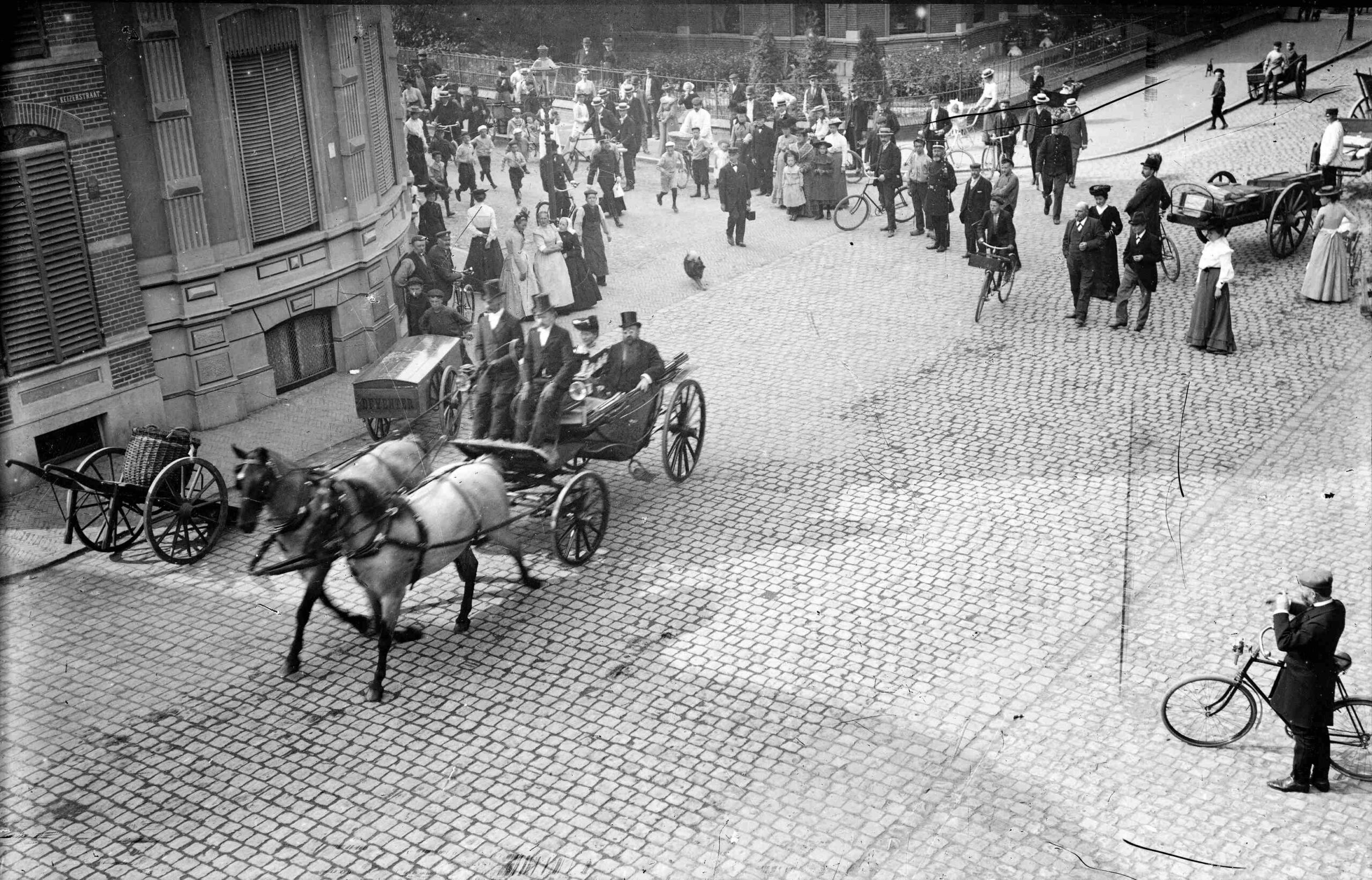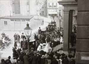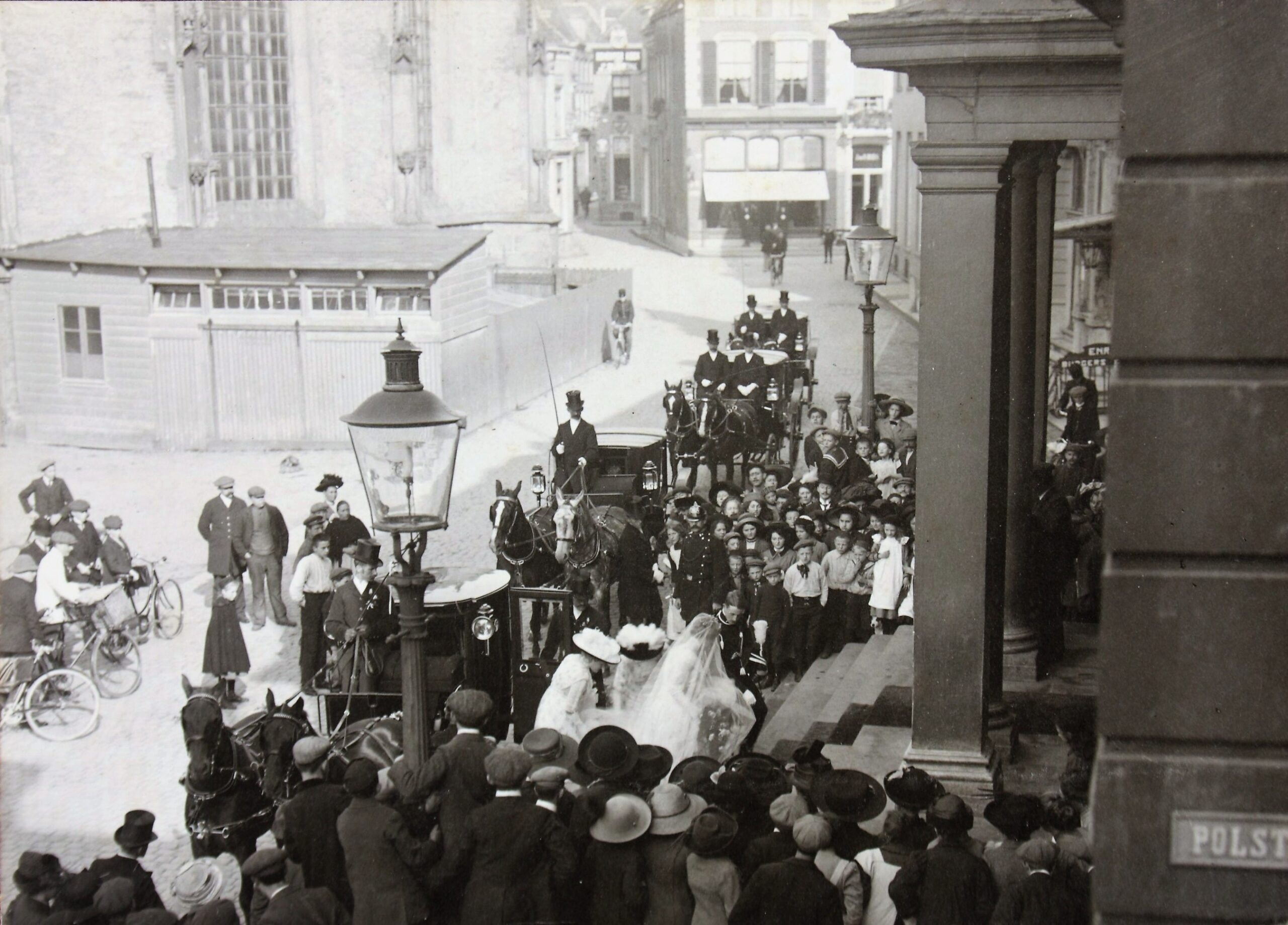 Bruidstoet voor het stadhuis in 1912, voor het huwelijk