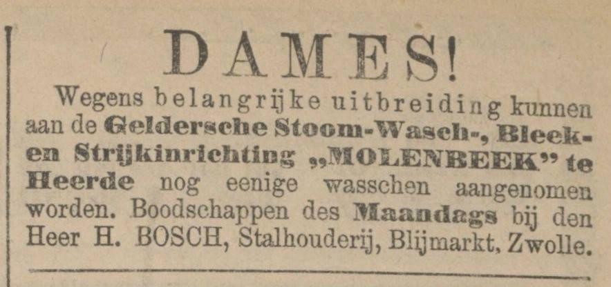 Op 30 mei 1866 maakt Hermanus Bosch Hz. (1832-1903) bekend dat hij een nieuwe omnibusdienst gaat verzorgen vanaf het Heeren Logement van en naar alle treinen. Hij is ‘tevens beschikbaar voor alle ingezetenen tot aan en van hunne woning à 25 cents de persoon’. Bagage mag gratis mee. In de volgende winter rijdt de omnibus nog steeds, maar gaat het tarief met vijf cent omlaag. Twee jaar later vindt uitbreiding plaats: “Wij vernemen, dat de stalhouder H. Bosch alhier, op aandrang van vele handelaren en particulieren, concessie heeft aangevraagd voor eene omnibusdienst tusschen deze stad en Kampen, omdat, zoo als genoegzaam bekend is, de uursbepalingen van den Centraalspoorweg voor het reizend publiek hoogst ongeriefelijk zijn. Die omnibus zal vertrekken: van Zwolle des morgens te 7 uren en van Kampen des namiddags te 3 uren.” (Provinciale Overijsselsche en Zwolsche Courant 27-11-1868)