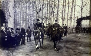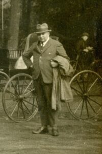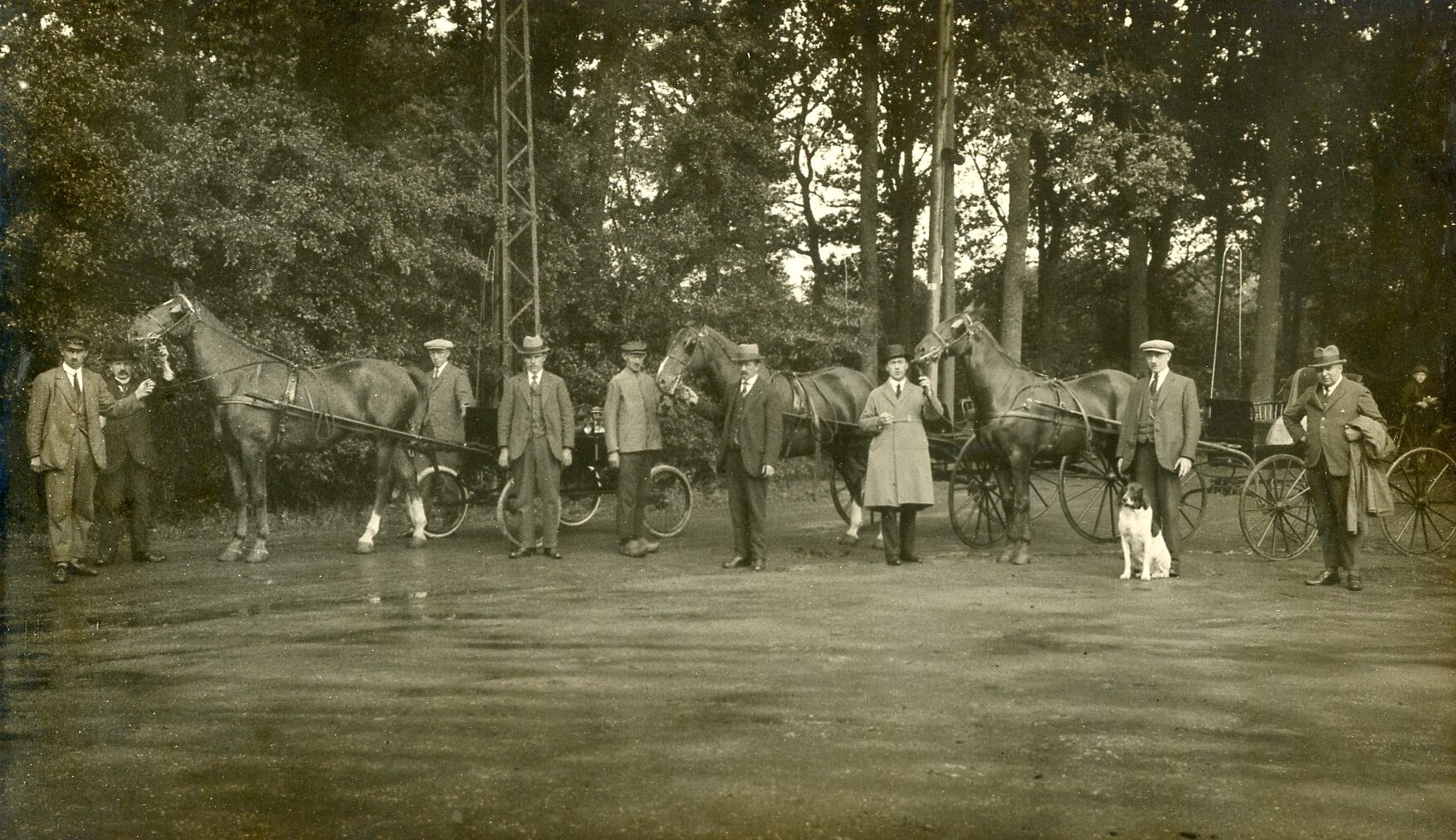 Hoogtijdagen van stal Alta, drie hackney’s klaar voor concours, met rechts de eigenaar zelf.