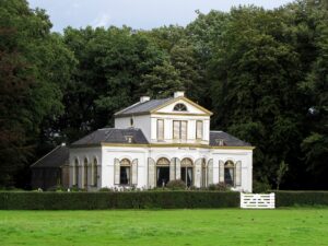 Bij tuigen behooren ook wagentjes. Ze zijn er en in diverse soorten en ook zoo om in te stijgen, niet bedekt met hoezen of stof, maar proper en gereed om uit te rukken naar verkiezing. ’n Aardig concourswagentje, met twee vingers wel heen en weer te bewegen, ’n dogcart, licht en sterk, en nog meer van die sierlijke maaksels, om er mee ‘kening op ‘e wei’ te wezen op een prachtigen zomerschen dag. En twee prachtige arresleden met tuig voor geval er twee voet sneeuw mocht liggen en men toch ook wil genieten van het landschap in wintertooi. Vervolgens naar de paarden, die, wat men denken kan, behoorlijk gehuisvest zijn, maar, niet grenzende aan het koetshuis. Daar moet ruimte wezen, daar is een open manege en midden in dit gedeelte park zijn dan de stallen en maken wij kennis met Marius, Prachtwald en nog een paar andere Arabische paarden benevens het concourspaard Upacha. Marius is een glimmend zwarte Friesche hengst, op en top en heeft forsche mooie lijnen en is iets meer temperamentvol naar het ons voorkwam dan anderen. Prachtwald maakt ook op den niet deskundige een voornamen indruk, ’t Is waar, dat in den stal niet de krachtige schoonheid tot volle uitdrukking komt, maar de jury kende hem te Leeuwarden ƒ 100 premie toe benevens ƒ 300 invoerpremie: wel bewijs, dat deze hengst, in Frieslands Zuidwesthoek van groote beteekenis wordt geacht voor de fokkerij. De beide Arabieren moesten nog door den zorg van den heer Hendriks tot grooter volkomenheid worden gebracht. Zij zijn later ontwikkeld en op 3-jarigen leeftijd begint hun ontplooiing pas. Natuurlijk wordt hier paardensport beoefend, hier bestaat een landelijke rijvereeniging en de dochters des huizes zijn daar toegewijde leden van. Hier kunnen rijders zich uitleven, hier ketst de hoef niet op hard asfalt en hier kan men zijn eigen weg kiezen, desnoods door de weide.