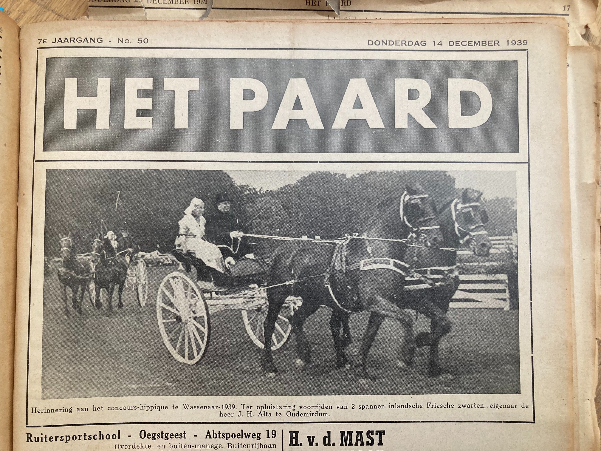 Jelle maakt reclame voor het Friese paard op het concours in Wassenaar 1939.