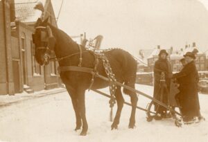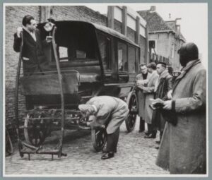Koetsier van het tweede rijtuig is Kl. v.d. Hoek. (Harlinger Courant 8-2-1957)