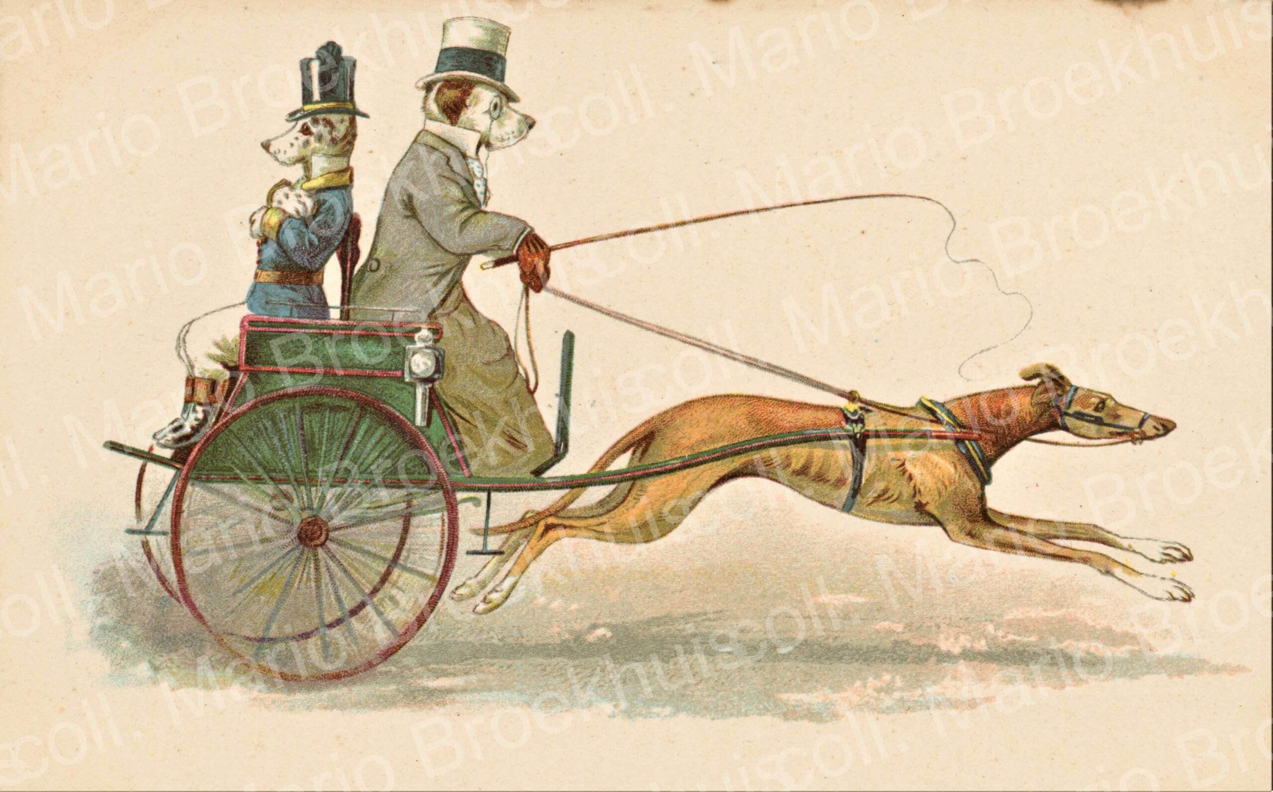 Het zijn de oproepen voor weggelopen koetshonden die een beeld geven van wat er in de mode is. In de achttiende eeuw zijn het vooral grote Deense honden. Vaal, blauw, zwart of ‘snoekgraauw’, met ‘afgesneden’ oren en pluim aan de staart. Die Deense doggen passen bij de luxueuze koetsen die in steden als Middelburg, Haarlem en Amsterdam rondrijden: ze zijn overdadig en aanwezig. Maar ze hebben ook een belangrijk nut om reizigers op lange tochten buiten de stad te beschermen. Dat zo’n hond het daarbij niet altijd even nauwkeurig neemt met wie langs de weg wel of geen kwaadaardige bedoelingen heeft, ervaart de filosoof en schrijver Jean Jacques Rousseau. Twee jaar voor zijn dood, op weg naar het Franse Belleville, werkt een voor de koets lopend Deense hond hem tegen de vlakte. Rousseau raakt daarbij gewond en houdt er tot op het laatst last van, aldus de Middelburgsche Courant in diens overlijdensbericht op 4 augustus 1778.