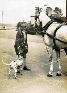 Dalmatiër als nostalgisch element bij een road coach (Old Berkeley, London-Oxford, 1928)