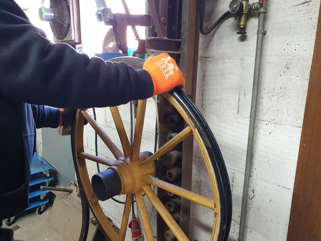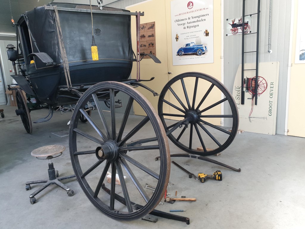 Update van het werk voor Kasteel de Haar. De napoleon, een van de vier rijtuigen in dit restauratieproject van de Stichting Hippomobiel Erfgoed, had last van losse spaken. De wielen zijn te droog geweest. Platweg vergeleken met een auto: de wielen zijn niet meer in balans, gammel bovendien. Daarvoor restte maar één ding: de ijzeren [...]