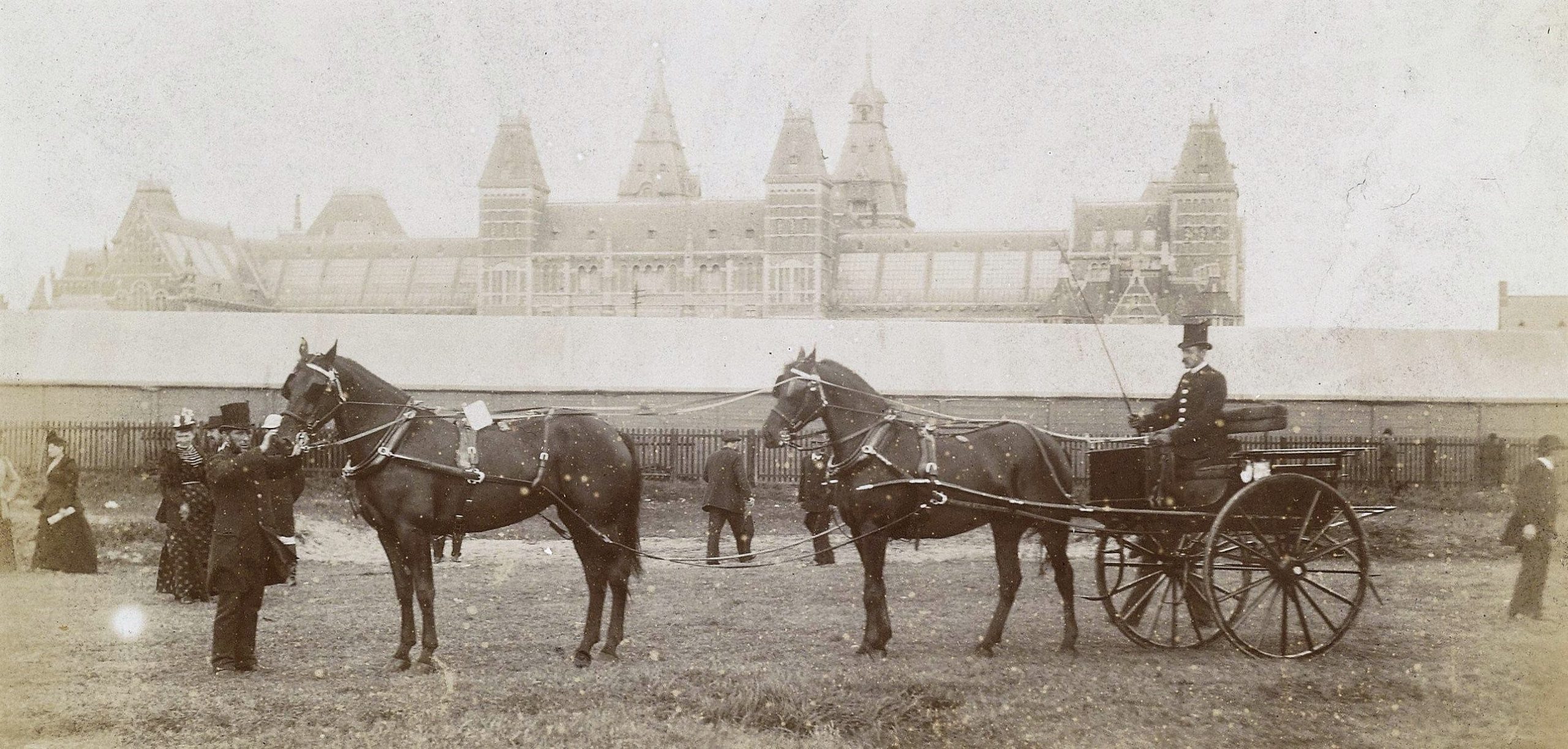 Zoekplaatje voor op een verregende dag…. Er is weinig van bekend, behalve de locatie: Amsterdam. De aanspanning, een tandem, is klassiek. Dat wil zeggen het livrei dat de mannen dragen, hun snor en bakkebaarden, het model van het tuig en zelfs het type van de paarden ogen eerder uit 1870 dan van 1900. Tegelijkertijd is [...]