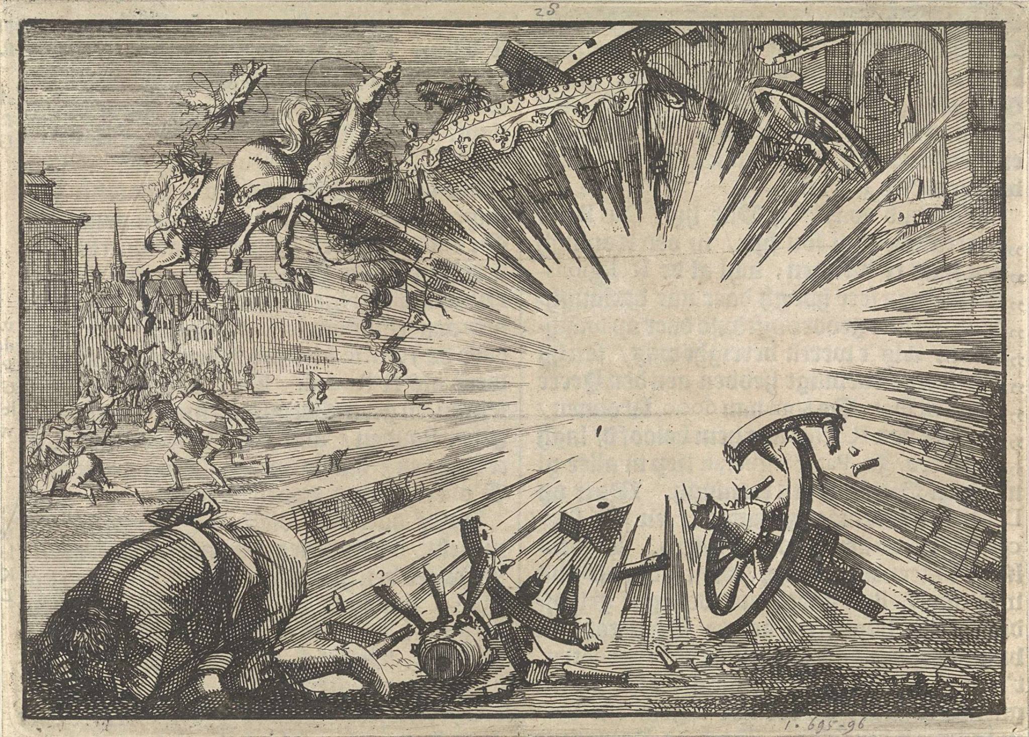 Dit is niet van gisteren…. Maar het moet, volgens de ets die Jan Luyken in 1698 maakte, een grote ravage zijn geweest, toen het rijtuig en de paarden van koning Lodewijk XIII in de lucht vlogen. Als gevolg van de ontploffing van een ‘helse machine’. Een historisch gevalletje van illegaal vuurwerk? Het is onbekend. De [...]