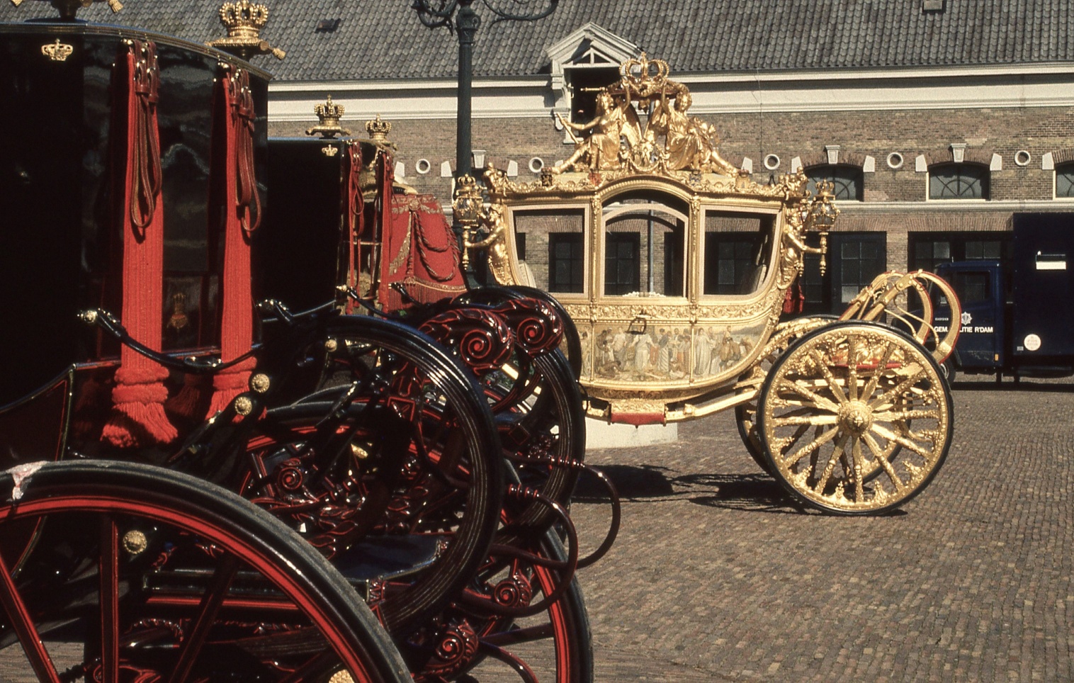 Bij het huwelijk van koningin Wilhelmina en prins Hendrik, 1901. Bijzonder van deze foto's is niet alleen de compositie, maar ook het gebruik van de ‘oude’ livreien en tuigen van het Koninklijk Staldepartement. (bron: Haags Gemeentearchief)