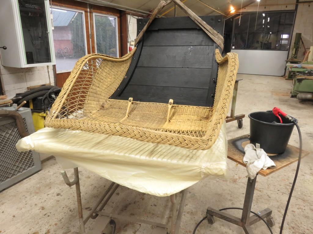 Het echtpaar Stolk dat de restauratie van de rijtuigen uitvoert loopt niet in zeven sloten tegelijk, maar ieder heeft wel zijn eigen taken. Zo is Mar Stolk de afgelopen en de komende weken nog druk met het schoonmaken van de oude verflagen op de panier. Het is een precisieklusje dat ze doet met wattenstaafjes en [...]