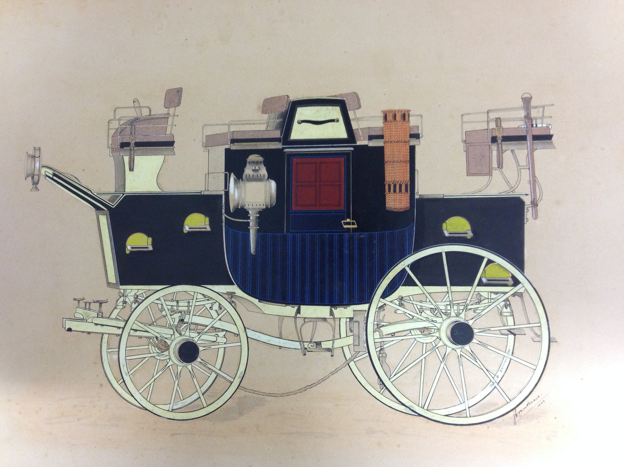 Ontwerp in pen en inkt, ingekleurd in olieverf op karton, gesigneerd ‘Jb van Bakel, 1905’. Het is gemaakt door de 21-jarige Jacob van Bakel tijdens zijn stage bij Vanden Plas in Brussel. Dit ontwerp is zo fraai mede door de verticale strepen op de panelen: het maakt de coach modieus in zijn tijd, zelfs een [...]